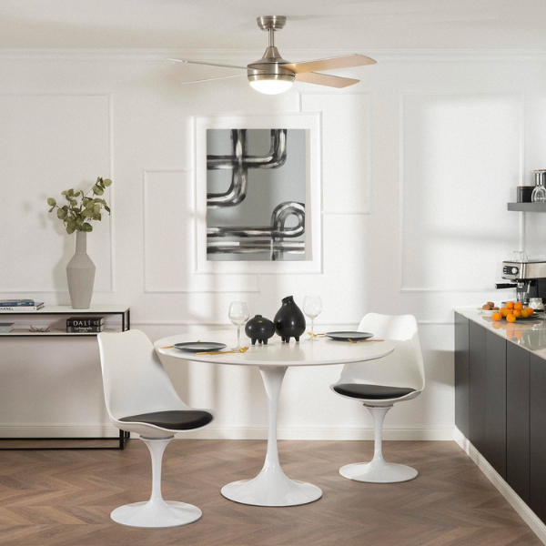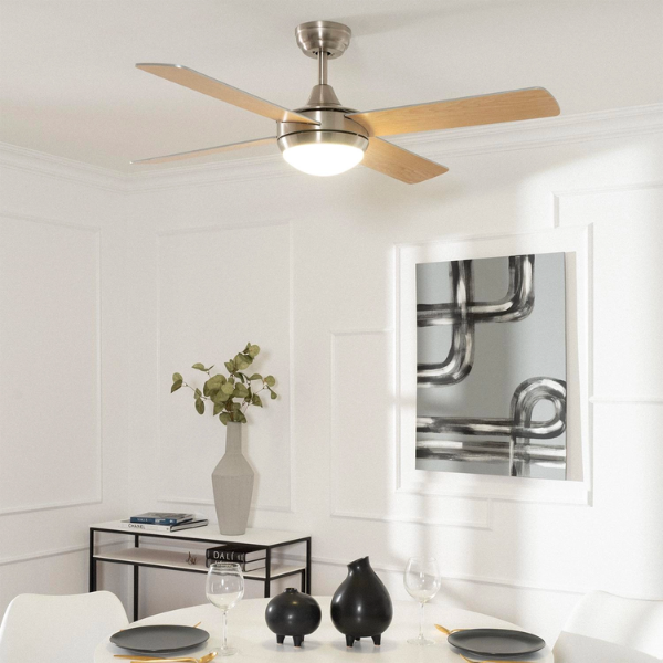 Luci Incorporate (Opzionale): Il ventilatore a soffitto Gustav può essere dotato di illuminazione LED CCT integrata, che consente di regolare la temperatura del colore (luce calda, neutra, fredda) e creare diverse atmosfere in base alle proprie esigenze.